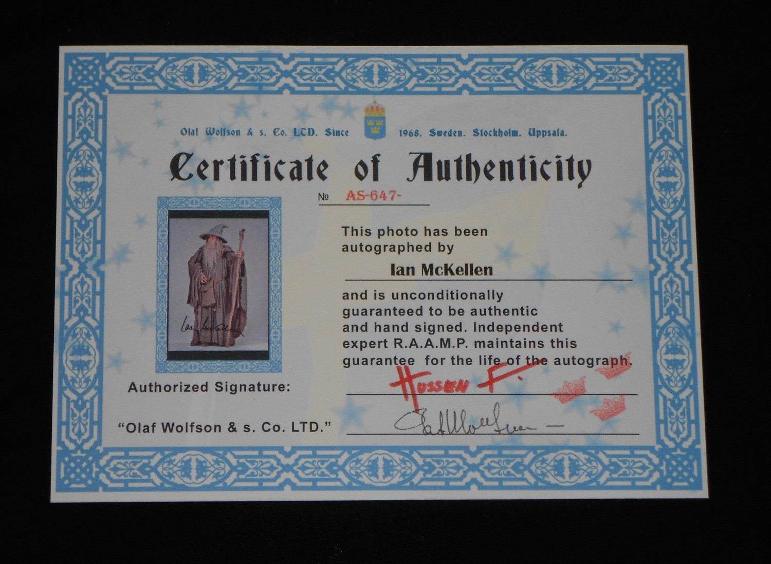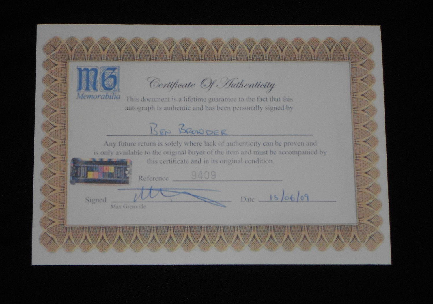 Друзья, к нам опять поступило много просьб от наших подписчиков с просьбой удостоверить подлинность автографов из нескольких маленьких иностранных фирм по продаже и сертификации меморабилий. Мы обратились с этой просьбой к нашему старому другу эксперту графологу Павлу Семеновичу С., который неоднократно нам помогал в этом вопросе. Напоминаем, что Павел Семеныч является профессиональным экспертом графологом, отработавшим более 20 лет в юридической конторе. Так же он является крупным коллекционером автографов, которые он начал собирать еще в 1978 году. Вы его должны помнить по предыдущим аутентификацииям автографов Пола Маккартни, Роберта Де Ниро, Аль Пачино, Роберта Дауни мл. и тд., а так же разбором фирм предоставивших эти экземпляры. Напоминаем, что исследования проводятся в видимом свете, визуально и с использованием оптики с увеличением 5-15 крат. Автографы предоставлены заказчиками сравниваются с личными экземплярами автографов полученные самим автором статьи с гарантированной подлинностью. Нашим экспертом проводится процесс оценки подписи (сравнительное исследование), при котором составляется совокупность признаков, достаточная или недостаточная для положительного вывода. На нашу экспертизу были предоставлены экземпляры автографов от трёх иностранных фирм - 1) "MG Memorabilia". Великобритания. 2) "Olaf Wolfson & s. Co. LTD.". Швеция. 3) uSTAR.Net. США. Ну, начинаем процесс... №1 Под первым номером рассматривается автограф актера Бена Браудера, заверенный сертификатом фирмы "MG Memorabilia" из Великобритании. Экземпляр заказчика. Экземпляр куплен заказчиком Валерием М. на известной иностранной интернет площадке. Автограф сравнивается с экземпляром из коллекции автора, автограф получен лично им на мероприятии "FedCon 22" в Дюссельдорфе, Германия проходящее с 09 по 12 мая 2013 г. Экземпляр из коллекции автора. Предоставленная заказчиком фотография имеет размер 18 х 24 см. Напечатана на плотной, качественной фото бумаге, с логотипом фирмы Kodak на с обратной стороны. Подпись актера выполнена металлизированным маркером серебряного цвета. Автограф написан уверенной рукой, с различной силой нажима в разных частях подписи, что указывает на рукописный стиль исполнения (Не автограмм, автопен). При исследовании фотографии с бокового ракурса видны четкие следы маркера, что доказывает, что это не репринт. Подпись выполнена с правильным, последовательным наложением слоев. По ключевым моментам подписи выявлено 99,9 % совпадений. При оценке результатов сравнительного исследования установлено, что совпадающие признаки могут составить совокупность, достаточную для категорического и вероятного положительного вывода. Наш независимый эксперт графолог заявляет, что подпись выполнена актером Беном Браудером. Подпись является подлинной, выполненной без искажения признаков. Заключительный вердикт - подпись подлинная. В комплекте к автографу приложен сертификат подлинности. Сертификат напечатан на плотной, качественной бумаге. Сертификат белого цвета, с темно золотым оформлением. На сертификате указана фирма, подтверждающая его, присутствует голограмма, рукописным способом нанесено имя актера. Сертификат номерной, с живой подписью эксперта и датой выдачи. При проверке сертификата на сайте компании результат не адекватен, на письмом ответили, но с подтверждением сертифик